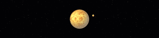 Fig. 1 – Animation of a typical Pegasid system, with both the star and planet drawn to scale. Here, the planet orbits the star in just 3.5 days. For comparison, the Earth orbits the Sun every single year, and Mercury, which has the shortest orbital period in the solar system, orbits the Sun every 88 days.