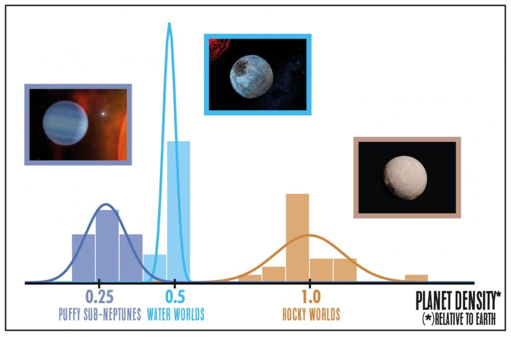 Just as observation of the population of an entire city can reveal tendencies which are difficult to see at an individual level, the study of a population of planets has helped the scientists to identify hitherto unknown patterns. “Because of the uncertainties in the masses and radii of our measurements, an individual planet could sometimes fit into more than one category (terrestrial, water world, etc.). It is when we observe a population of planets as we have done here that we can bring out the patterns of distinct, different compositions”, explains Luque.